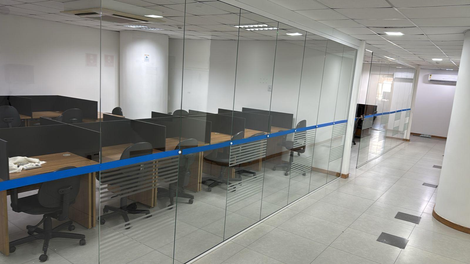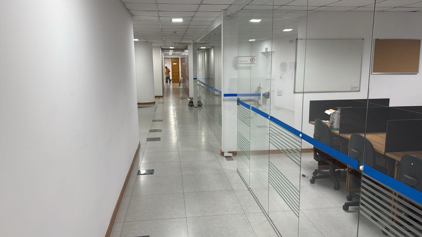 Sua configuração permite ambientes open space ou salas privativas, atendendo empresas de diversos segmentos.