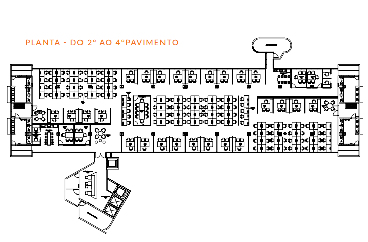 Prédio com pavimento térreo + 6 andares, recepção em todos os pavimentos.