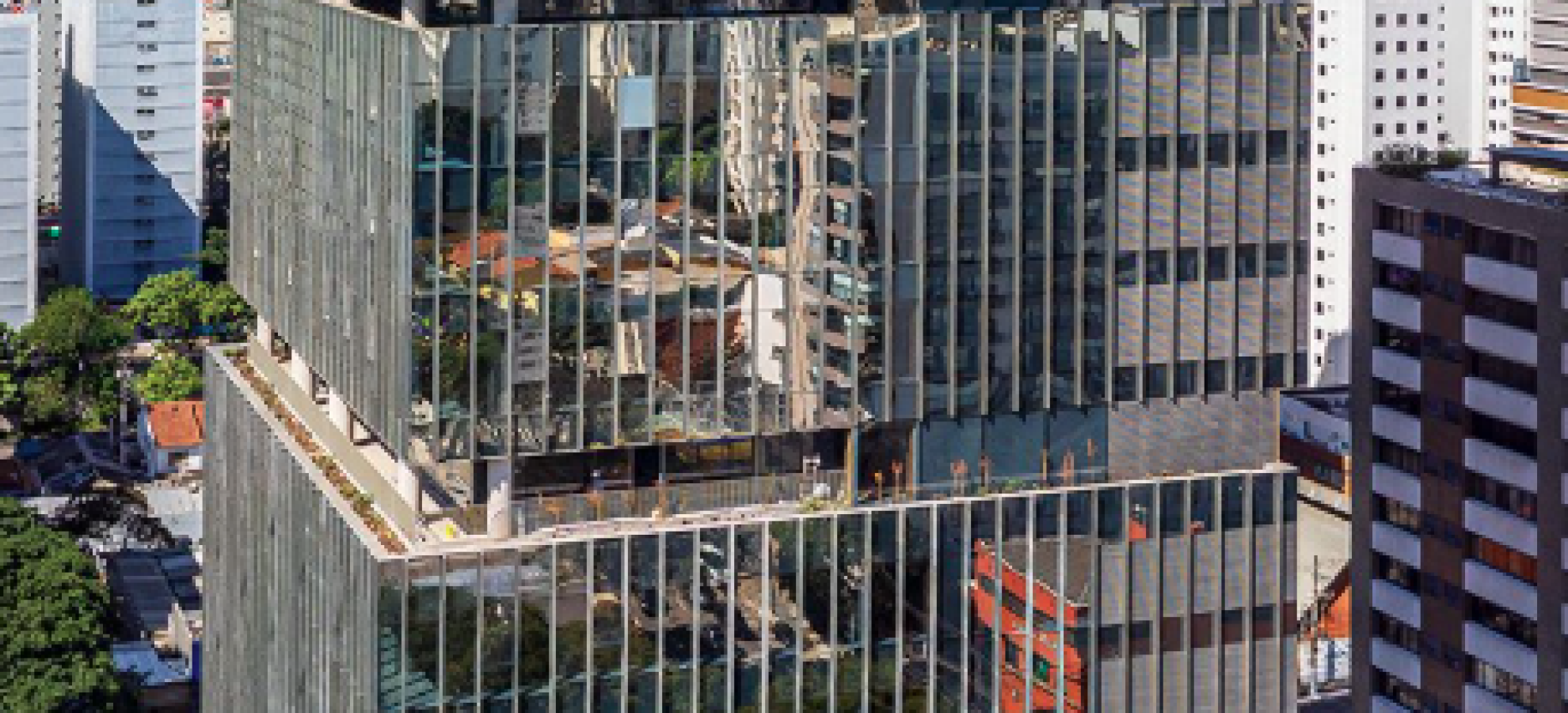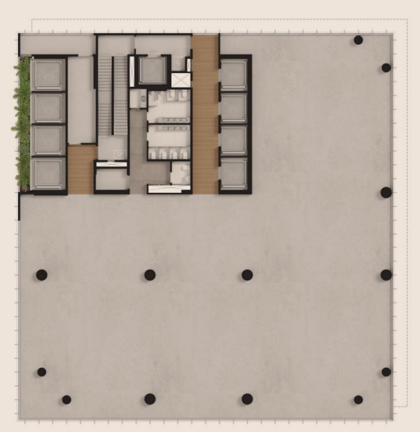 Implantado em um terreno de 9.500 m², o VIVA! foi projetado para promover conexões, eficiência e bem-estar, preservando amplas áreas verdes, jardins suspensos e uma praça arborizada que, no futuro, contará com um mall integrado de serviços, alimentação e conveniência. Suas lajes corporativas amplas, eficientes e altamente flexíveis atendem empresas que buscam representatividade, tecnologia e sustentabilidade em um ambiente corporativo de alto desempenho.